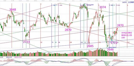 四月份馬上要進入下旬,上證指數自三月份于江恩4*1線2646點止跌后,進入了震蕩反彈階段,在此過程中,贏家大膽預測,小心求證,對于整個市場進行了持續的跟蹤和分析。三月份被套,四月份給了差價解套的機會,只有這樣才可以把握調整下來的機會。而4月份已經再次進入到臨界點附近,大盤自2646點已經上漲接近21天,而下周一即是本月的預測最關鍵窗口,指數也已接近目標點2860-2870一線,投資者要特別注意。短期的操作風險已經大于機會,切忌追漲殺跌。