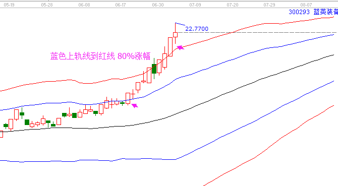 1、蘭英裝備6月12日突破藍色上軌線,目前創下新高,短短14個交易圖80%漲幅