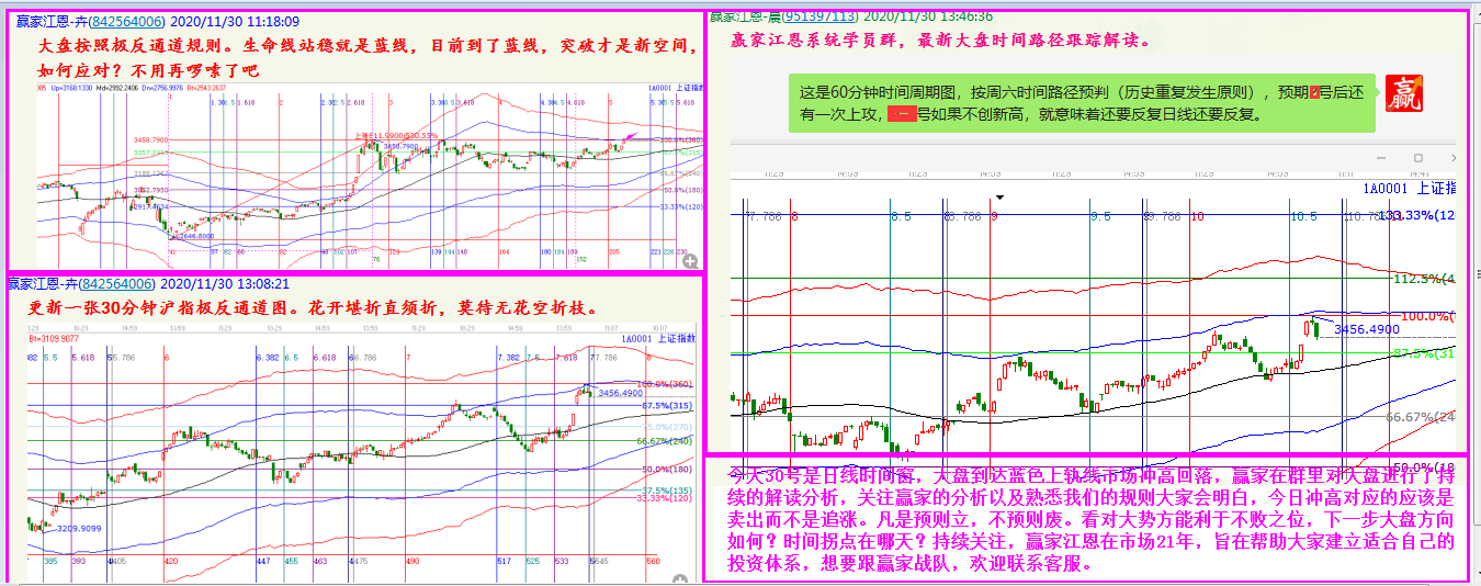 今天30號是日線時間窗,大盤到達藍色上軌線市場沖高回落,贏家在群里對大盤進行了持續的解讀分析,關注贏家的分析以及熟悉我們的規則大家會明白,今日沖高對應的應該是賣出而不是追漲。凡是預則立,不預則廢。看對大勢方能利于不敗之位,下一步大盤方向如何?時間拐點在哪天?持續關注,贏家江恩在市場21年,旨在幫助大家建立適合自己的投資體系。