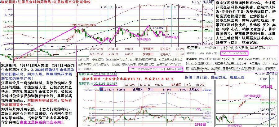 生命線買點學習應用之旗濱集團旗濱集團,1月14日納入關注,2月2日回落到生命線再次關注。2.382時間確認生命線再次給出低吸機會,同步入場,兩根陽線送來踏踏實實的春節紅包!江恩理論是一套預測機制,有效的預測才能更好的跟隨,才能規避人性,讓投資更如魚得水。旗濱集團本次生命線關注后,疊加30分鐘時價信號提前測算反彈空間,并提前委托待市場確認。對照圖形驗證比對:實際走勢與預期完全一致。知其然并知其所以然,才會有持續的利潤。贏家江恩所有分析全部留痕,有時間有圖形有依據有解讀,當你能靜下心來認真考察, 你定會明白贏家江恩體系的與眾不同!贏家江恩引領理性投資22年,專注散戶操盤盈利體系的構建。高端理論體系+專業軟件工具+系統培訓課程,幫助投資者快速掌握一套炒股技術。跟隨贏家江恩,在每天的實戰應用中學習江恩時價技術,從選股-買入-賣出-風控-心態,精抓買賣細節,尊重市場信號,提前做好預測分析,規避人性主動獲利!