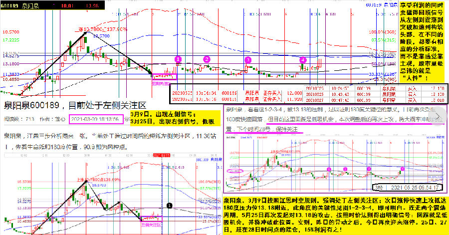 泉陽泉,3月9日按照江恩時(shí)空規(guī)則,強(qiáng)調(diào)處于左側(cè)關(guān)注區(qū);次日漲停快速上攻抵達(dá)180度壓力位13.18附近,此角度的關(guān)鍵性見圖1-2-3-4,即可明白。連走兩個(gè)震蕩周期,5月25日再次發(fā)起對(duì)13.18的攻擊,按照時(shí)價(jià)法則得出明確信號(hào):回踩就是低吸機(jī)會(huì),并將沖破此位置。實(shí)則,6月2日的異動(dòng)之后,3日再度迎來漲停。25日、27日,趕在28日時(shí)間點(diǎn)的建倉(cāng),15%利潤(rùn)有之!