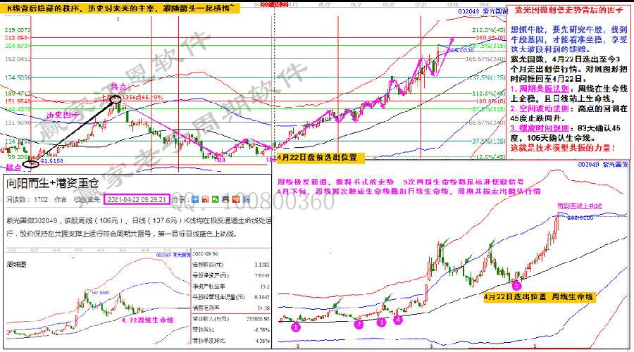 紫光國(guó)微,4月22日選出至今3個(gè)月走出翻倍行情。對(duì)照?qǐng)D形把時(shí)間推回至4月22日: