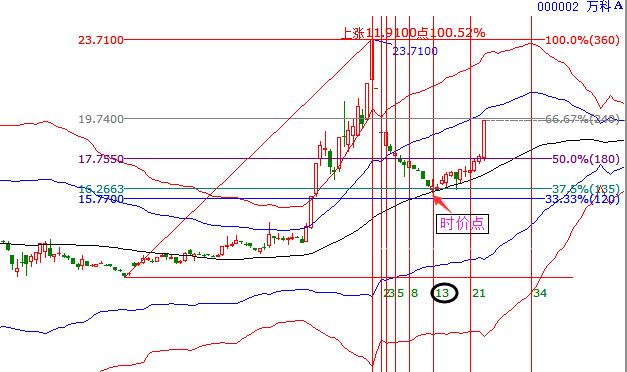 技術(shù)面解析:1.作圖如下:以2015年9月29日低點(diǎn)為起點(diǎn),12月18日高點(diǎn)為終點(diǎn),作出波段百分比這個(gè)工具,同時(shí)保留240度、180度、135度和120度分割位;以2015年12月18日高點(diǎn)的時(shí)間為起點(diǎn)作出費(fèi)氏時(shí)間循環(huán)線;同時(shí),調(diào)出趨勢(shì)工具極反通道。如下: