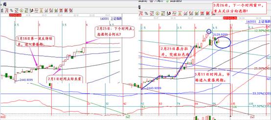 先來說下大盤的走勢,最近一次談大盤是在2月23日,當時的上證指數處于明確的上漲周期中,筆者提示的是2月25日是下一個時間窗口?,F在回過頭來看,市場在時間窗口暴力拉升,直接突破了江恩極反通道紅色線,進入到了超強勢震蕩區域,指數在攻擊江恩45度3130點后遇阻回落,并在3月11日時間窗口確定市場進入震蕩及調整時間周期,下一個關鍵時間點3月26日。目前,指數處于紅色線附近,短期預計市場會在藍色線及紅色線區間內震蕩運行。個股交易,規避高位,尋找低位滯漲股為主。具體的大盤走勢及操作機會可關注江恩看盤及贏家江恩公眾號。