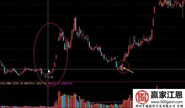 3、當股價回跌到只有一個漲停的時候,就可以進行買進,而且買進持股多是大牛股的形態;