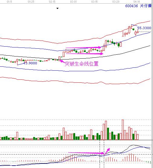 此時候股價波動較小,紅綠量柱都難于釋放。此時的股價位置到達前一波上漲的高點附近。出現這種形態后市一般有表現。比如近期片仔癀(600436)的走勢。