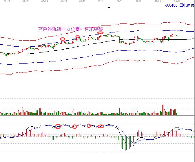 在股價進行拉升后,進入空中加油的表現期,此時沒有綠柱放大,macd的兩條平均線粘合再次出現金叉走勢。這時候就是可以重點關注的時候。比如最近的三元股份(600429)走勢就符合這樣子的走勢,結合贏家江恩軟件的極反通道走勢更為確定。