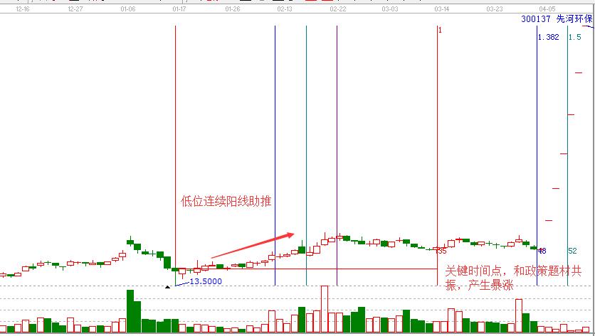 滬深市場中每輪牛市,漲幅最大的股票都是主力籌碼異常集中的低位螺旋槳股,尤其是那些經過長期下跌依然扛過來的主力嚴重被套的股票,市場一旦好轉,他們會的股票具有報復性的反彈和失去理性的瘋狂。螺旋槳股票啟動的時間有時會落后于大盤,因為主力需要出一部資金,作為拉伸資金,對于這種股票,一旦發現底部有拉升跡象,應該果斷參與,如先河環保走勢圖。
