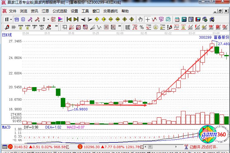 外在條件對股票的影響主要表現在資金上了,所有的資本市場、證券市場,其實都是資金推動型的市場。沒有錢股價漲不懂,有的時間一個小的波段也很容易是自己推動起來的行情。資金的推動越大,且行情就越加的明顯。那么我們今天就找一只股票來看看,比如說,富春股份。