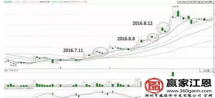 為什么要是上面這樣的走勢?因為我們主力在做強勢股的時候在K線上的表現是一根陽線,所以第一根陽線,是一種基礎,然后出現雙陰線或者三根陰線,這個說明有人可以在進行打壓或者說是在出貨,如果是主力主攻出貨,那么隨后的陽線一定不會接近前一根陰線的最高點,顯然這么說來,這個陽線接近或者超過前一根音信啊的最高點的,足以說明了主力自己的繼續買入,同樣就預示著該股將會突破。接下來看下面的圖形.