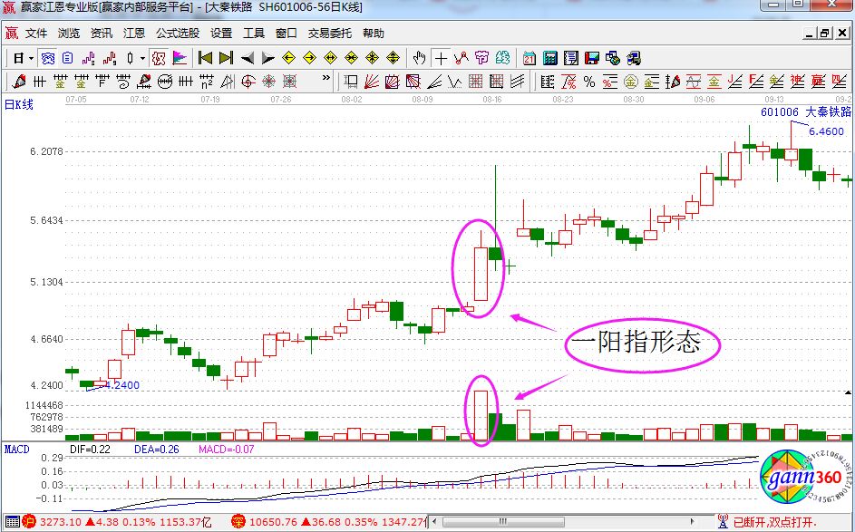 什么是K線形態?它其實指的就是一根平底的大陽線,當然它的自身的條件就是巨幅低開。因為這樣的大陽線之后,一般都會伴隨著非常不錯的機會。如果是在相對低位出現一陽指并且來量能也是巨放且連續量能比較強的話,那么在一陽指成形的時候或者次日逢低進行建倉,這是個對于抓連續大陽勝算是比較大的。具體大家可以參考下圖中的一陽指來進行辨別。