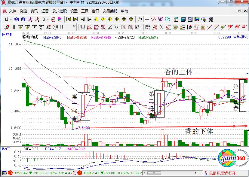 三柱香形態(tài)一般是以一漲停為基準(zhǔn)短期內(nèi)呈現(xiàn)n型回落不破前漲停日低點,形態(tài)次之的是呈現(xiàn)N型會做,回調(diào)到達下軌線果斷的買入,上漲到上軌果斷的賣出。該形態(tài)的時間上特征就是:從最高點回調(diào)下來的第2天、第5天、第7天、第8天的關(guān)鍵時間周期買賣點,這個形態(tài)的個股一般是回調(diào)到第5天、第8天的時候才會有機會買入,超過13天不起則行情就會走弱,所以投資者就應(yīng)該果斷的賣出。