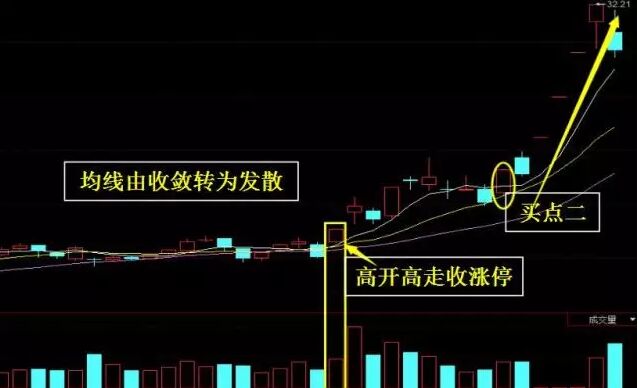 出現在中長期上升趨勢的初期,或長期上升趨勢大的中期調整行情末期。5日、10日和20日均線由逐漸收斂、粘合轉為緩慢發散。日K線上以小陽線、小陰線穩步緩慢攀升,其中小陽線居多。股價或指數跳空高開,放量收出大陽線或中陽線,越過所有周期均線,并突破其他技術形態上的關鍵位置。