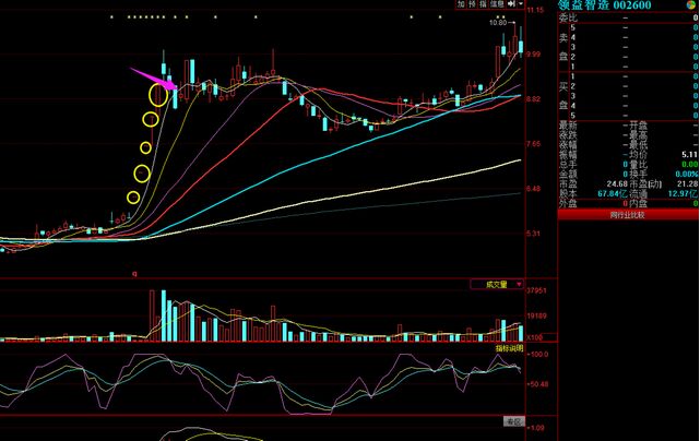 打開股票軟件調(diào)出上海物貿(mào)在去年11月份的走勢,從圖中偶們可以看到股價前面先后是出現(xiàn)了4個漲停板基因的,在2017年11月13日時當(dāng)天股價呈現(xiàn)了高開異動上漲,同時對比前一天成交量的話,當(dāng)天呈現(xiàn)明顯的放大,如圖中粉紅色箭頭所指的那根K線。在走勢中沒有下探回補當(dāng)天跳空高開的缺口,在第二天股價就呈現(xiàn)出了漲停。
