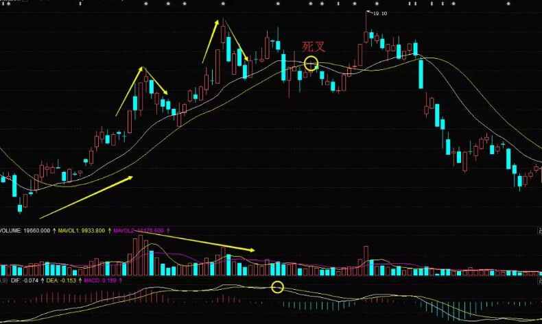 從上面的實(shí)戰(zhàn)案例,我們就可以總結(jié)一下運(yùn)用成交量看趨勢來規(guī)避騙線陷阱的技術(shù)要點(diǎn):K線走波浪式上升趨勢,一浪高過一浪;成交量堆高點(diǎn)降低,顯示處了人氣不足;此時多空線若形成死叉,則必須出場。