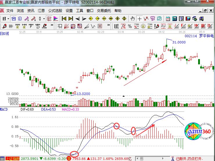 macd別樣金叉的空中纜車走勢是怎么樣的?下面我們就來看羅平鋅電的走勢圖。