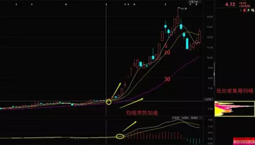 均線加速起航進(jìn)場有什么樣的技術(shù)要點(diǎn)?運(yùn)用這個(gè)方法捕捉短期利的技術(shù)要點(diǎn)就是:股價(jià)要經(jīng)歷過一段時(shí)間緩漲;股價(jià)突然急漲,5、10、30日均線加速上漲;macd同樣加速,而籌碼峰呈現(xiàn)低位秘籍狀態(tài),可以進(jìn)行買入。下面我們來看海鷗住工的實(shí)戰(zhàn)走勢圖。