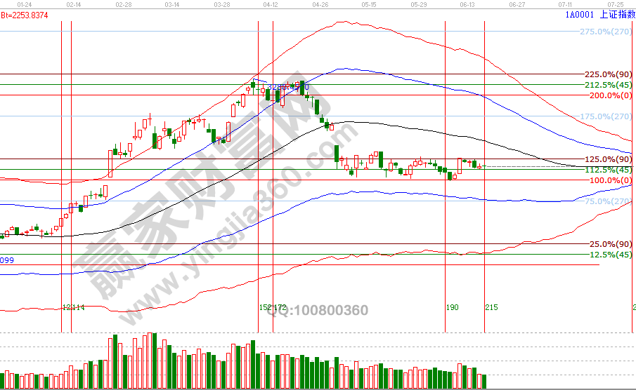 大盤連續三個交易日收盤在贏家江恩系統工具分析的關鍵區2880-2890之間,盤中擊破2880后收復,此區間是通過江恩價格圖表四方形和60分鐘極反通道生命線判斷得出。指數自3288點調整后持續的橫盤,主要是日K線擊破極反通道生命線進入弱勢區,疊加下旬外部不確定性因素所導致,市場最終會按自身運行規律而運行,投資者所要做的就是順應市場、跟隨市場,并做出相對應的策略。從技術角度出發,關鍵位不破保持延續反彈觀點。規則紀律讓我們在市場中生存,通過工具量化方法與規則,更能提升有效的判斷,交易不單純指的是買入、賣出,持倉與休息也是不可或缺的組成部分。6月19號盤中壓力是135度2911點、180度2928點,盤中支撐是0度2860、315度2844點。操作策略,指數處于極反通道弱勢區域的反彈走勢,繼續關注2880-2890區間得失做持倉決策,整體持倉保持3-5成。
