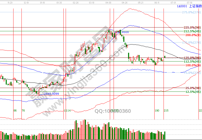 大盤跳空脫離近幾日持續(xù)談到的關鍵位,盤中最高沖擊至第一目標位2950點,回顧近期思路,10號早盤收復2840點按照規(guī)則開倉,2880-2890為持倉關鍵位,連續(xù)三個交易日收盤關鍵位,分析的觀點是不破延續(xù)反彈,今天盤中到達第一目標位后,按規(guī)則賣在壓力,5成倉或以上者可以獲利部分籌碼,剩余倉位繼續(xù)持有,未來幾天關注江恩價格四方形與百分比延伸線2911-2900點,此區(qū)間震蕩不破延續(xù)震蕩反彈動作。6月20號盤中壓力是225度2944點、180度2928點,盤中支撐是90度2894點。操作策略,指數(shù)處于極反通道弱勢區(qū)域的反彈走勢,繼續(xù)關注2911-2900區(qū)間不破延續(xù)反彈,整體持倉保持3成左右。