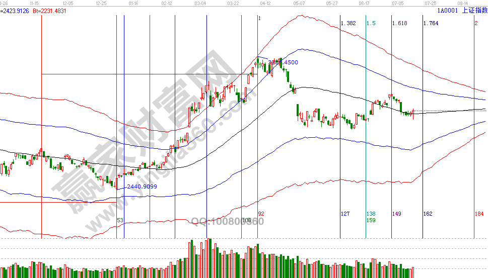 15號日線時間窗口,早盤一波快速下探至近期一直提示的60分鐘藍色下軌線止跌企穩,完成了自2號短周期藍色上軌線共振警示信號的調整,最終日線收盤保持在生命線2923點上安全區域。早盤殺跌應了11號分析的標題【當信號出現時 你是相信系統規則還是人性】,無方法、無規則紀律、無提前應對的散戶會選擇拋售,當前看分析的你是做的什么選擇呢?持續跟蹤贏家江恩大勢分析的投資者清楚了解,連續一周多的談到60分鐘藍色下軌線是開倉博弈機會,盤中在贏家江恩系統學員區談到,此位置是定性是對3048點的一次確認,市場空間是否能拓展到前高,關鍵看江恩價格百分比零度位2966點,收復此位置則會試探前高,反之反彈的空間將會打折。大盤下個時間窗口是23號,7月16號盤中壓力是315度2978點、270度2961點,盤中支撐是135度2911點、180度2928點。操作策略,指數圍繞極反通道生命線上下震蕩,2822反彈動作還未明確結束信號,2880附近開倉的籌碼持倉線可以參考2911點得失做決策,整體持倉保持3成左右。