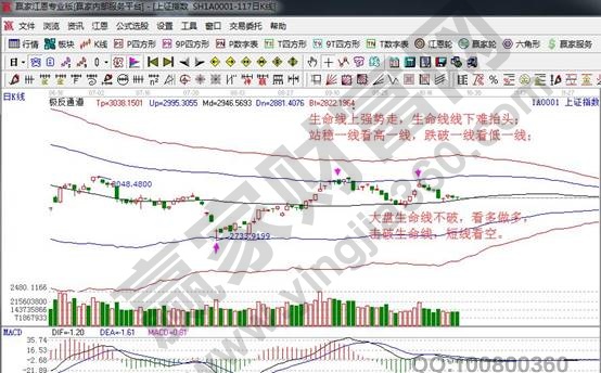 ★依據贏家江恩理論系統極反通道提示:指數日K線在黑色生命線2928點上運行,按規則生命線上看多做多。