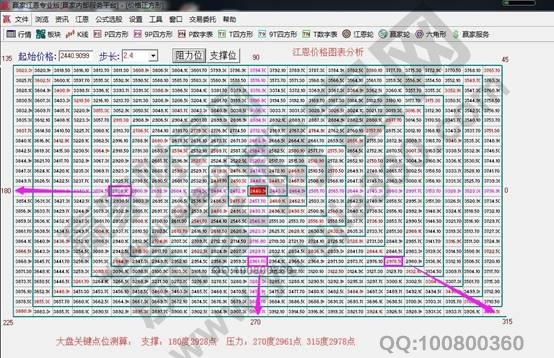 ★依據贏家江恩理論系統江恩價格四方形提示:以2440點為起點做江恩價格圖表,24號盤中壓力是270度2961點、315度2978點,盤中支撐180度2928點,支撐上運行看多。
