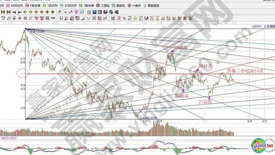 ★依據贏家江恩理論系統自由時間價格計算器(江恩箱)提示:以3587為起點,2440點為終點做圖,指數在下降1*1線獲得支撐,此線企穩不破,目標看高至價格二分位3013點。