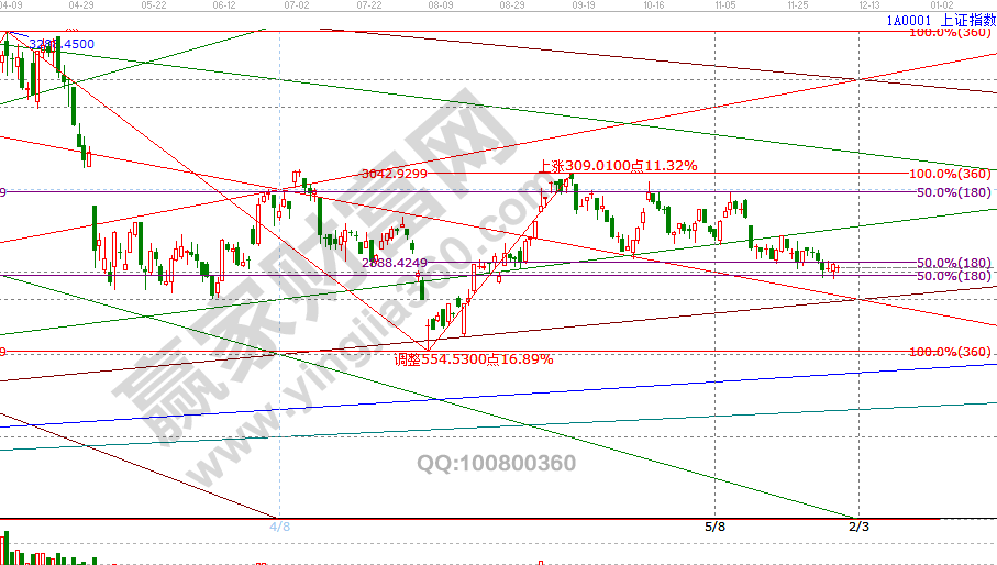 指數早盤觸及江恩箱3/8空間分割位2870點止跌,全天圍繞下降1*1線震蕩,隨著時間窗6號臨近,市場盤中震幅收斂到極致方向選擇在即,空間上,指數向上突破3*2線2914點則順勢做多,反之如跌破2870點快速下行挖坑,在江恩箱2*1線2810支撐尋找機會,5、6號兩個交易日重點跟蹤方向選擇,跟隨市場做好倉位應對。5號盤中壓力2894、2911點,盤中支撐2860-2870位置。操作策略,指數生命線下弱勢區域,倉位控制在3成,穩健者重點關注12月6號時間窗口機會。