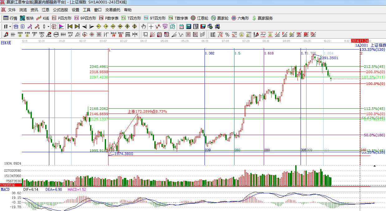 ☆依據贏家江恩系統黃金時間周期線提示:下一重要時間窗口是11月24日附近。