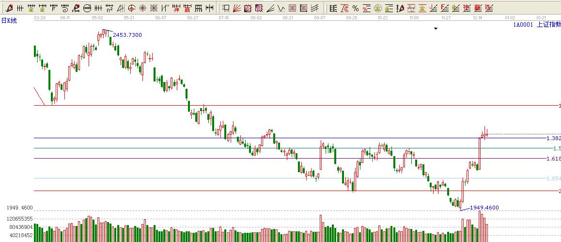 ★ 依據(jù)贏家江恩黃金價格延伸線提示:大盤1.382位置2053點上方盤整,1 位置2240強 壓力。