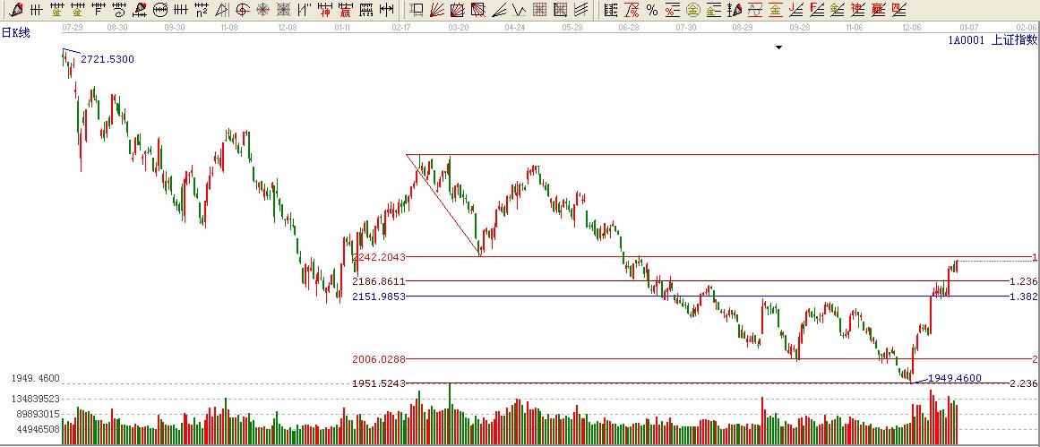咨詢:13333833889大盤高開后震蕩上行,再一次創(chuàng)出了本次反彈的新高,截止收盤大盤上漲27.35點漲幅1.24%收出一根光禿禿的陽線,盤面漲停家數(shù)25家,跌停一家,跌幅5個點的僅一家。2012.12.31日就是本年度最后一個交易日了,馬上即將踏入2013年,贏家江恩感謝廣大投資者對贏家支持,提前祝大家元旦快樂。