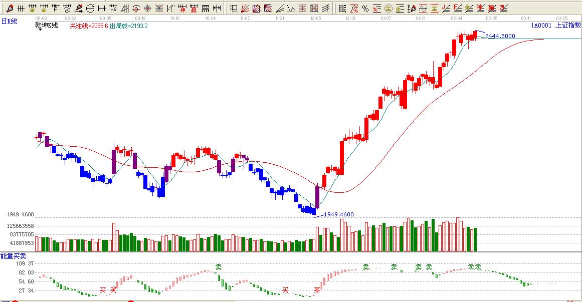 ★依據贏家乾坤K線提示:大盤在紅色區間看多做多。