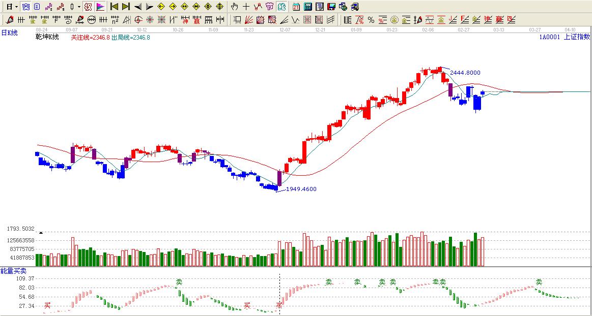 綜上所述:大盤處于極反通道生命線上方,按照極反通道法則:極反通道生命線不破看高至極反通道藍色上軌2457。