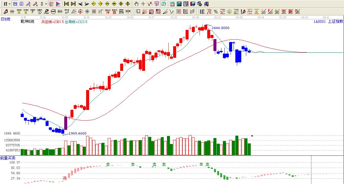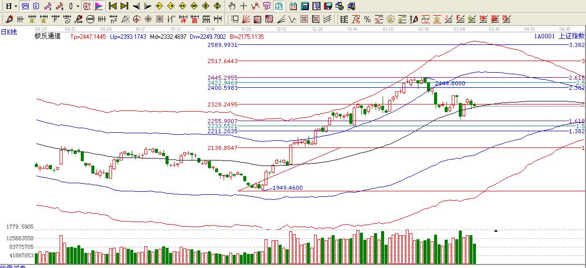 綜上所述:大盤處于極反通道生命線上方,按照極反通道法則:極反通道生命線不破看高至極反通道藍色上軌2457。