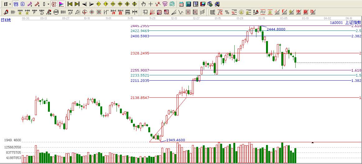 ☆依據(jù)贏黃金價格延伸線提示:大盤回踩2倍延伸位置2325點(diǎn)再度失手,此位置不過看跌至1.618位置2252點(diǎn)附近