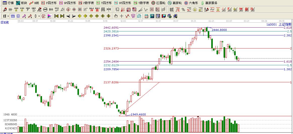 ★依據贏黃金價格延伸線提示:大盤處于黃金分割延伸1.618位置2252點這里不破看高一線至2倍位置2325點附近