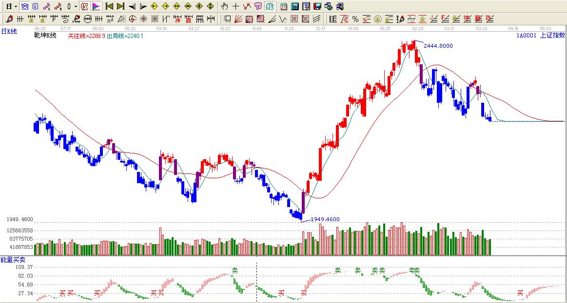 ☆依據贏家乾坤k線提示:大盤處于藍色區域內,看空。