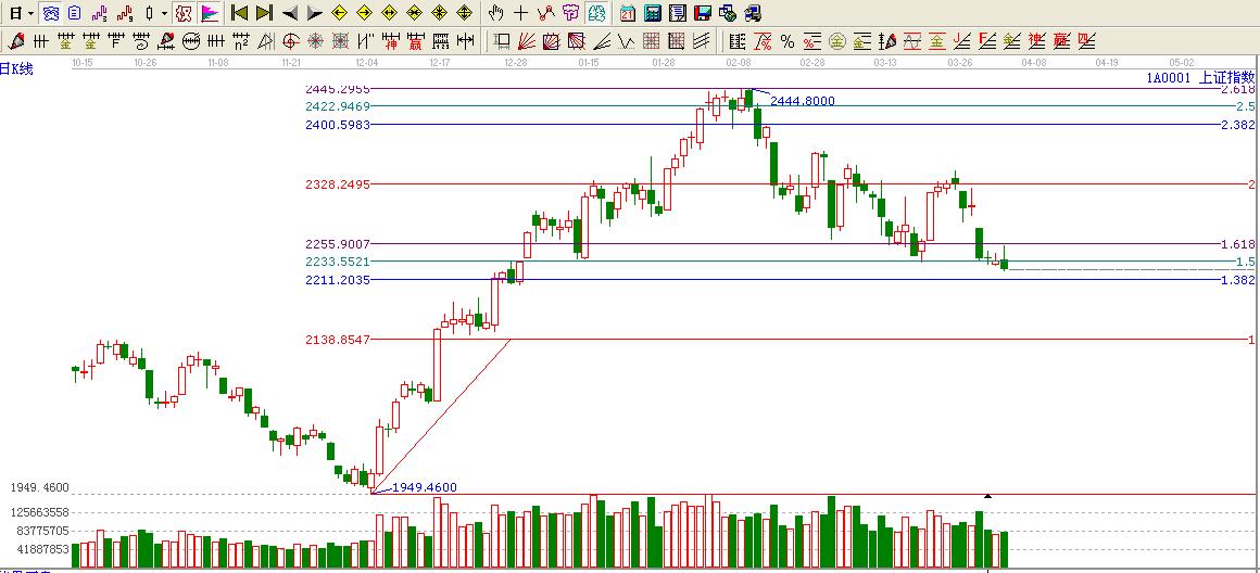 ☆依據贏黃金價格延伸線提示:大盤再4次考驗黃金分割延伸1.5位置2230附近支撐最終失守,下方支撐1.382位置2211點。