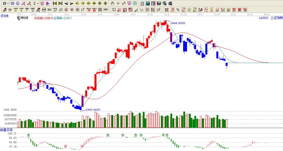 ☆依據贏家乾坤k線提示:大盤處于藍色區域內,看空。