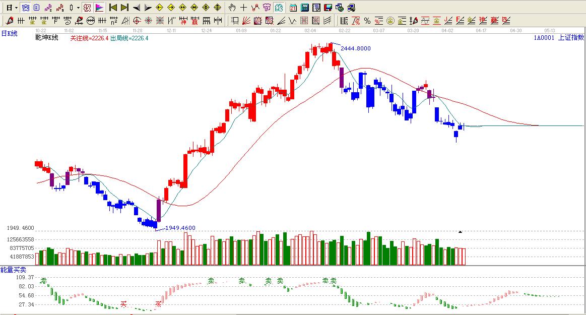 ☆依據贏家乾坤k線提示:大盤處于藍色區域內,看空。