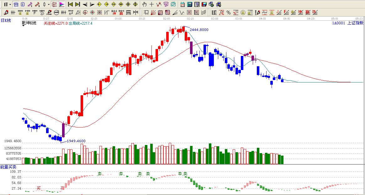 ☆依據贏家乾坤k線提示:大盤處于藍色區域內,看空。
