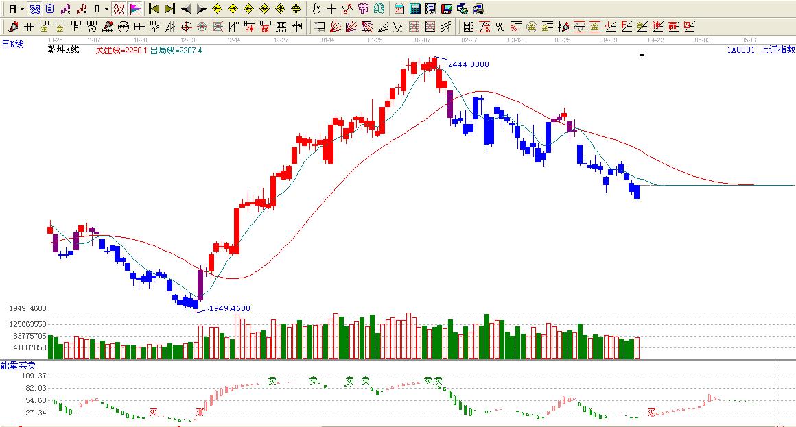 ☆依據贏家乾坤k線提示:大盤處于藍色區域內,看空。