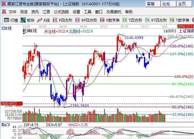 11月大盤開門紅,幾大指數高開高走全線上漲,主要收益于經濟數據PMI的利好刺激。板塊方面銀行、保險、煤炭和鋼鐵板塊表現平平,地產和券商股跑贏大盤,權重股中石油逆勢下跌;題材方面年報高送轉、次新股、股權為盤中亮點,個股普漲成交量較前日基本持平。技術方面短周期15、30、60分鐘再度收復極反通道生命線位置,還有上升空間同時15分鐘外軌線3135與日線江恩百分比構成盤中壓力,日線已在江恩百分比180度與240度對應的3081和3131震蕩10天,今日再度挑戰3131前期頭部區域,操作上5成波段倉持股不動,10月31號在3090一帶建的短線倉結合盤中突破力度決定去留,短線差價是以降低成本為目地,不可亂了章法,3111、3100為日內支撐,3131、3144為日內阻力,僅供參考,不構成任何投資建議。