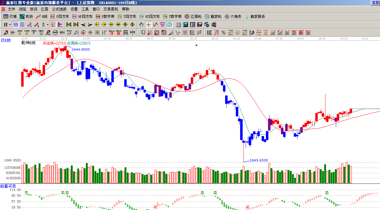 ★依據贏家江恩系統乾坤K線提示:并排K線助推,短期出局線、波段關注線多頭排列,趨勢不破看多;(1)