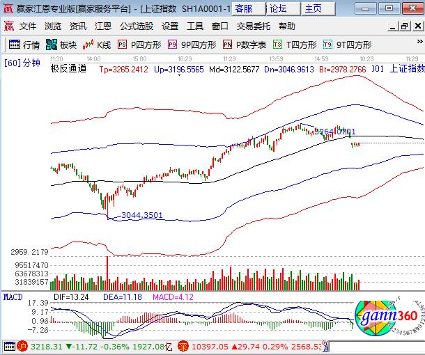 上周五大盤跳空低開收長下影線小跌0.36%,盤中跌幅不深主要是低力力度大,深成指和中小創全線上漲,中小板漲幅最大上漲0.84%。板塊方面,權重集體下跌,有色、鋼鐵、煤炭、石油等藍籌領跌,保險微跌;題材方面,鋰電池、高送轉、軍工領漲,充電樁、石墨烯、OLED盤中也有表現,鈷、黃金、一帶一路概念領跌,個股漲跌互現成交量萎縮。技術方面,持續關注早盤分析的投資者在極反通道外軌線位置想必已減倉,接下來就是等待滬指在震蕩回落至生命線過程中尋找時機,將高位減掉的籌碼回補,短周期120跌至生命線,本周預計以震蕩攀跌為主,江恩百分比90度是3211點,生命線是3170點,投資者所持個股通過贏家江恩軟件分析后做應對的策略,3211、3200為日內支撐,3235、3242為日內阻力,僅供參考,不構成任何投資建議。