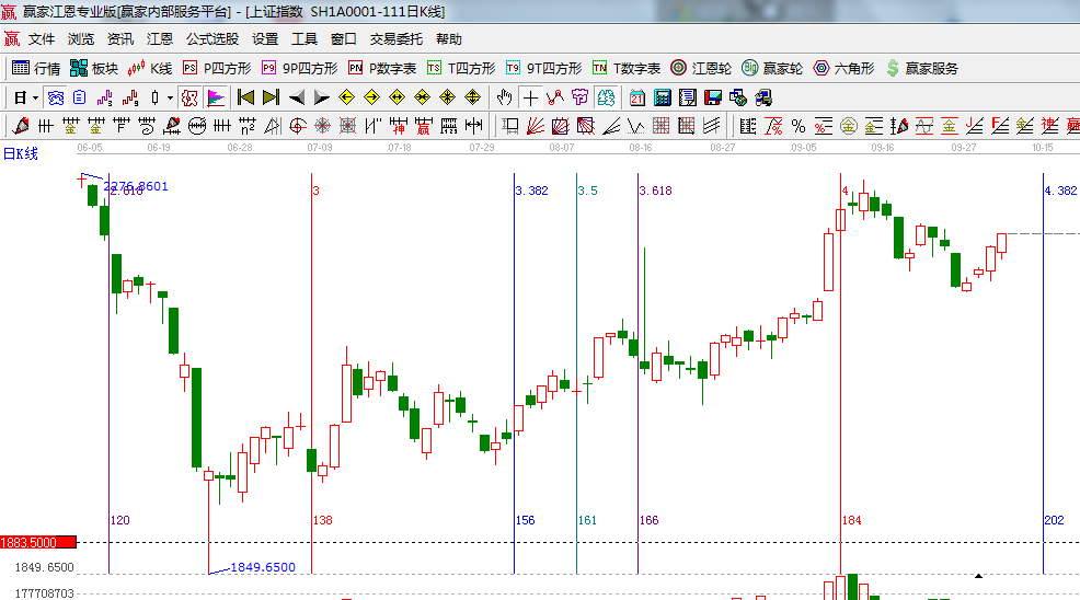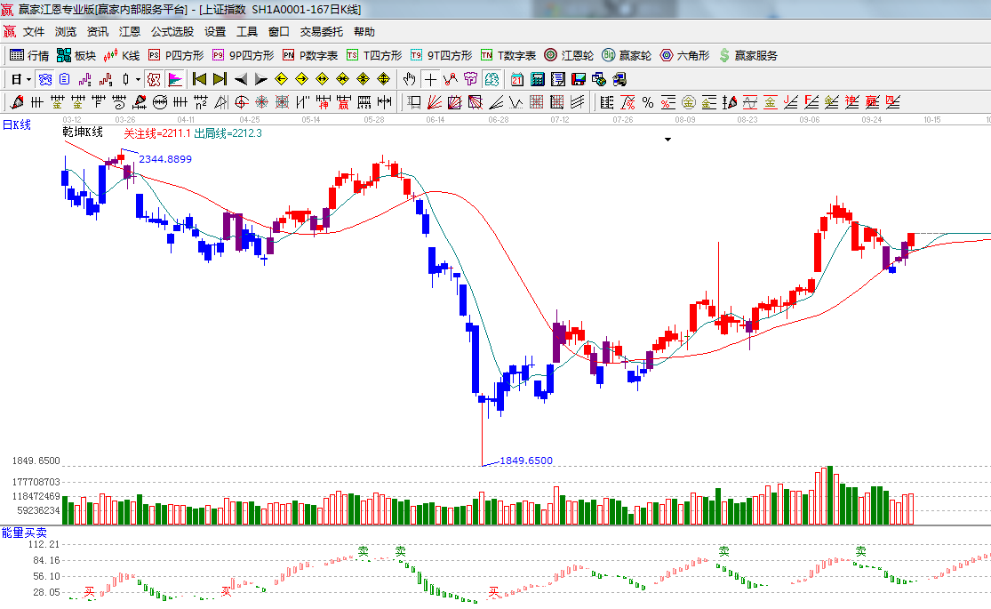★依據贏家江恩系統乾坤K線提示: K線顏色有紫色變成紅色,進入安全可操作區;