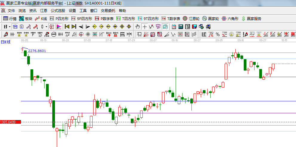 ★依據贏家江恩系統極反通道提示:短周期30分鐘外軌線與日線形成共振區2235區域;
