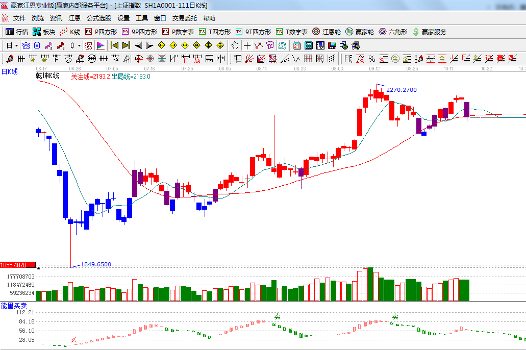 ★依據贏家江恩系統乾坤K線提示: K線顏色轉變為紫色發出警示信號;