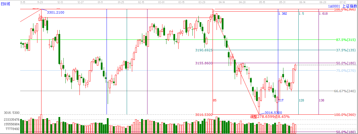 依據贏家江恩技術工具分析得出:周四,午后在保險的帶領下,滬指如期向上試探日線生命線3155點附近,當前60日線是3172點附近。3155--3172點構成一個區間阻力,此區間指數大概率會有一個反復震蕩,支撐位暫時關注3135點附近。所以適當控制倉位,不可隨意追高,以低位潛伏為主。建議重點關注中報業績預期良好的超跌股,時間上,關注6月12日,6月23日。