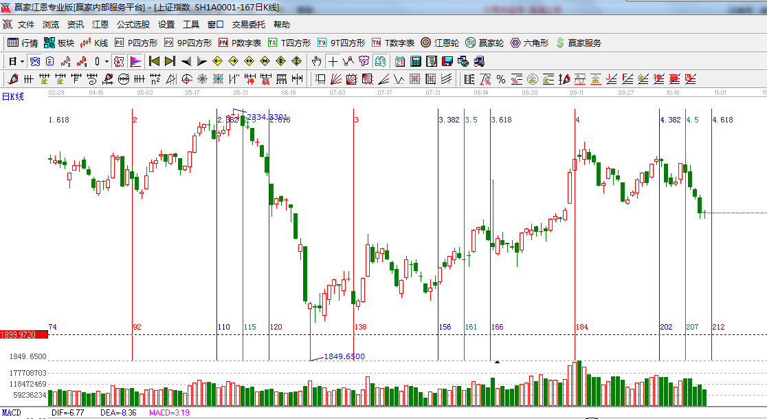 ★依據贏家江恩系統極反通道提示:MACD柱子如近兩日不在加長,則會對日線跌破生命線展開修復動作,整體策略以在生命線線下弱勢行情應對,以生命線的得失來調整倉位;
